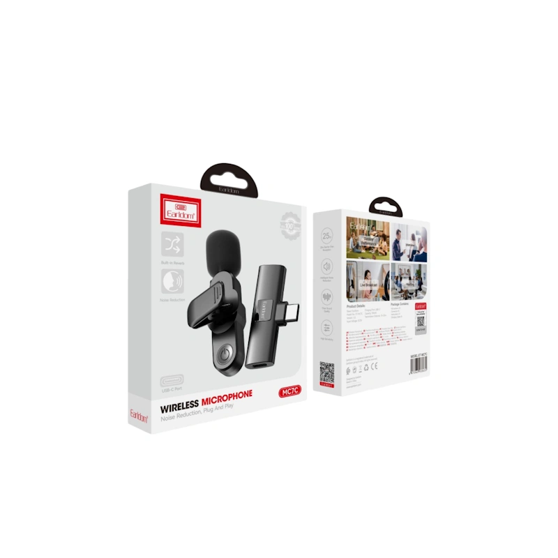 Το Earldom MC7C είναι ένα ασύρματο μικρόφωνο clip-on με USB-C σύνδεση, ιδανικό για vlogs, live streaming, podcast, παρουσιάσεις και online μαθήματα με Android, tablets ή PC, προσφέροντας καθαρό ήχο, εύκολη plug-and-play χρήση και φορητότητα.